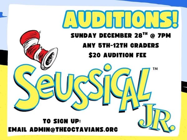 Join us on Sunday, December 28th at 7PM for Seussical Jr. auditions! Open to all 5th–12th graders.